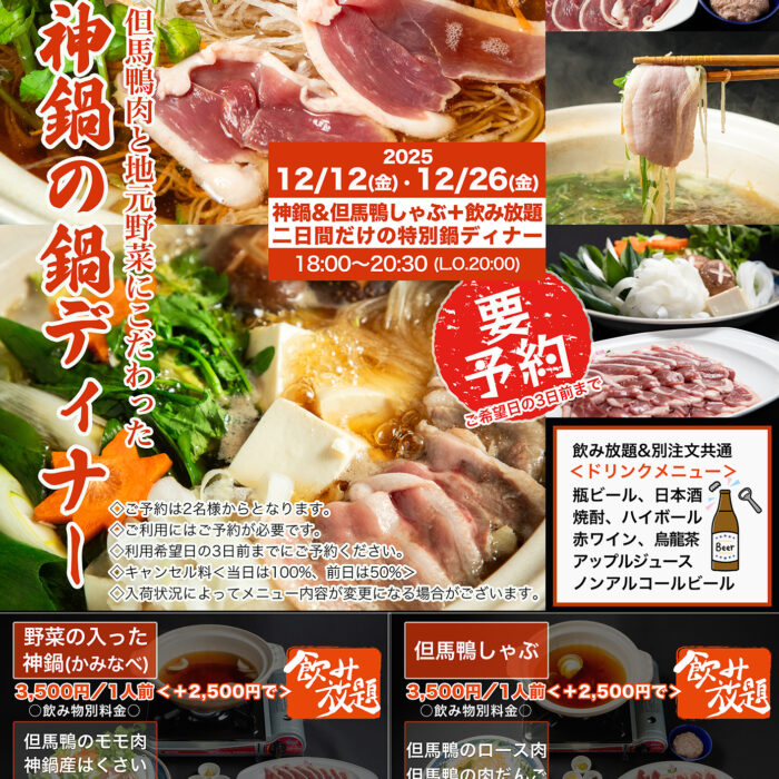 イベントEvent 2026.02.16 今年も開催!土野大介 竹灯籠作品展~竹の光がつなぐ、冬の静寂と春の芽吹き~ 2026.02.12 冬の神鍋<甘さ際立つ1日>第3回 神鍋つるし柿まつり 2026.01.22 神鍋高原の夜を温かく。2月限定ディナー営業オープン!【サラダバー付き】 Warm up your night in Kannabe! February Special Dinner is NOW OPEN with Free Salad Bar 2026.01.21 親子でも一緒に みそ作りワークショップ 2026.01.15 2月限定夜間営業のお知らせ<お食事処かんなべ> 2025.12.23 冬季限定|ディナービュッフェ開催<星が瞬く高原で過ごす、贅沢なひと時> 2025.12.04 2025年12月のワークショップまとめ記事 2025.12.03 2025年12月7日(日)開催! 神鍋りんごの枝で作るクリスマス&お正月リースワークショップ 2025.12.01 神鍋温泉ゆとろぎの季節湯<2025年冬至の前日はゆず湯です> 12/21(日)開催 2025.11.28 神鍋の鍋ディナー<12/12(金)12/26(金)の2日間限定:予約制>但馬鴨肉と地元野菜にこだわった選べる二つの鍋 <span>MORE</span><i class=fa-solid></i><span class=bg></span> RELATED SITES 関連サイト SNS 神鍋高原の季節の情報をお届けします 🔨 道の駅神鍋高原、リニューアル工事のお知らせ! ご不便をおかけしますが、工事中も道の駅は元気に営 焚き火の夜に、自然の酒を。🔥 日本初のリジェネラティブ・オーガニック認証を取得したパタゴニア プロビ 「Let's nail this landing!」 「この着氷をバッチリ決めよう!」 神鍋高原か 近畿でここだけ。 噴火口が生んだローカルブランド「KANNABE ROOTS」 兵庫県豊岡市、神鍋 【2/14(土)当日限定!バレンタイン特別企画🍫🍦】 神鍋高原で愛される「ヒラヤミルク」ソフトが、 【2/15限定】冬の神鍋、一番甘い1日。 神鍋高原の冷たい北風と秋の日差しが作り上げた、天然の宝石 神鍋温泉ゆとろぎより、年に一度の特別回数券販売のお知らせです♨️ 日頃よりご利用いただいているお客 \ 2月は毎日オープン!昼も夜も「道の駅」へ ❄️ / 神鍋高原で冬を満喫中の皆さまに、 お食事処か 【2月限定】神鍋の夜⛄️🍲 新鮮野菜のサラダバー付きディナー、オープンします! 「スキーのあと、 神鍋高原は一面の雪景色。 寒さで冷えた体に、温かいご飯が恋しくなる季節です⛄️ そんな今の時期にぴ