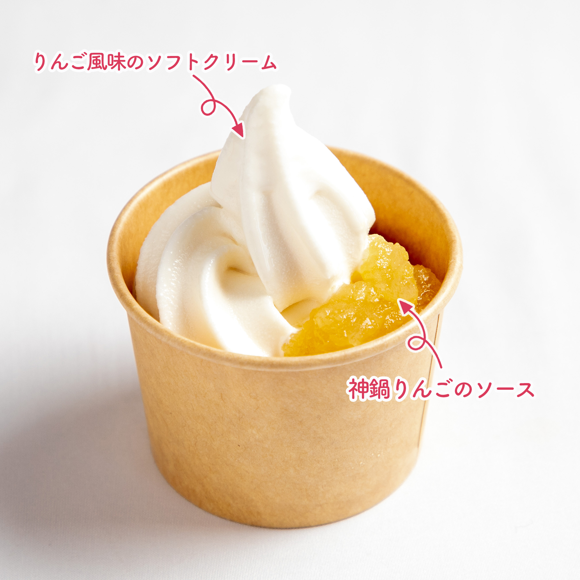 りんご風味のソフトクリームに神鍋りんごで作ったソースをトッピング♪