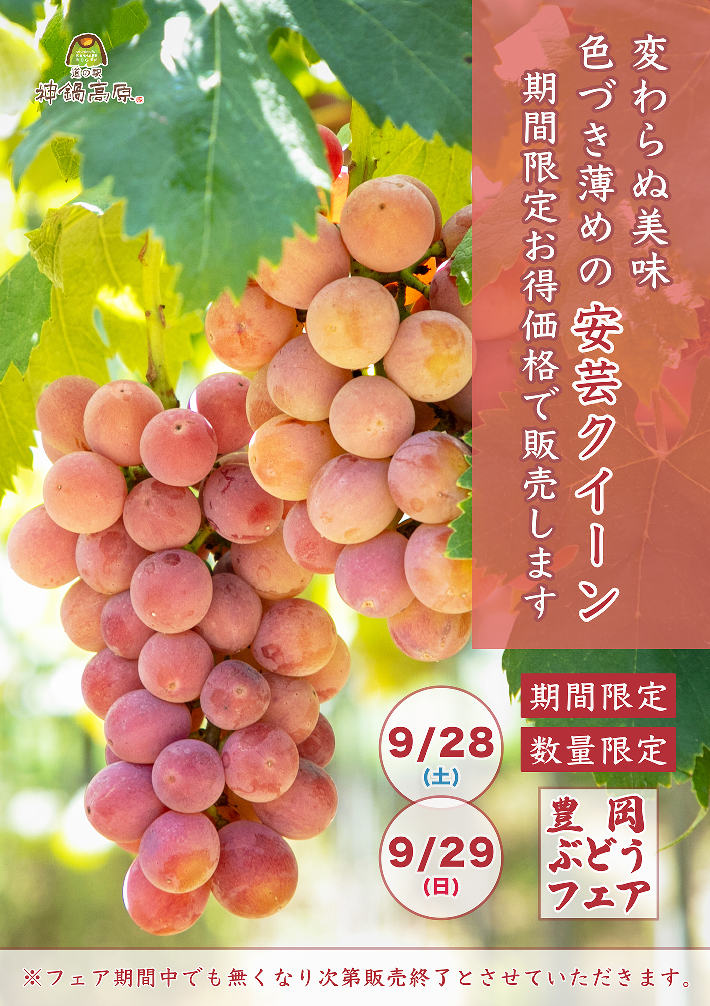 今週末も開催9/28(土)29(日)<豊岡ぶどうフェア>安芸クイーンをお得にお買い求めいただくチャンス再び