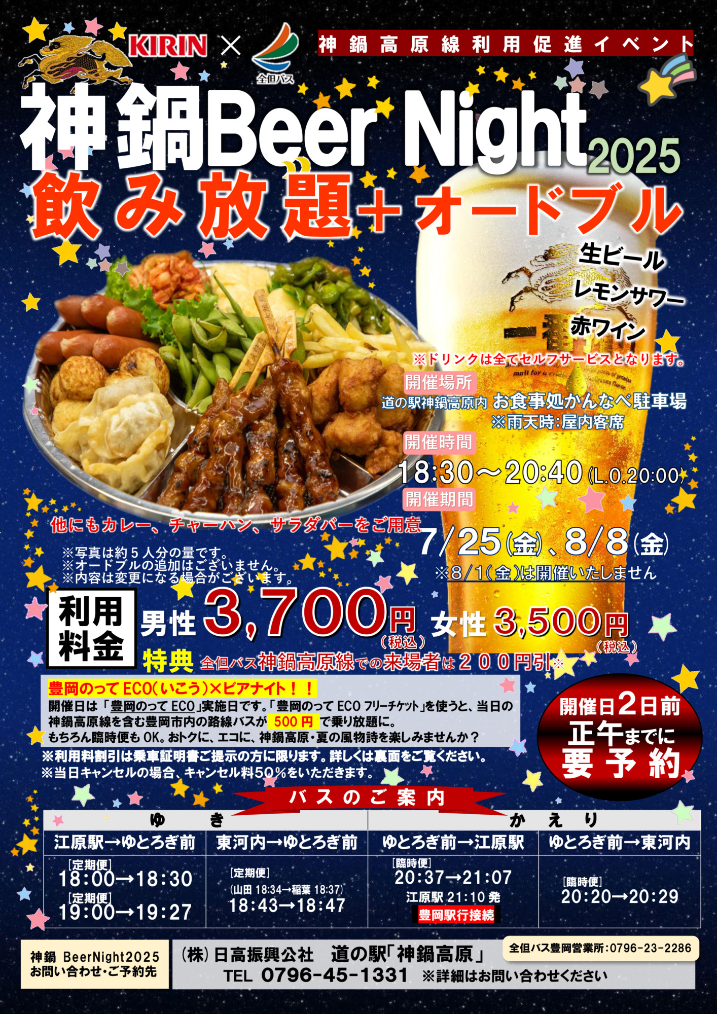 真夏の高原で<神鍋Beer Night2025>飲み放題+オードブル⭐︎7月25日(金)8月8日(金)お申込み承り中