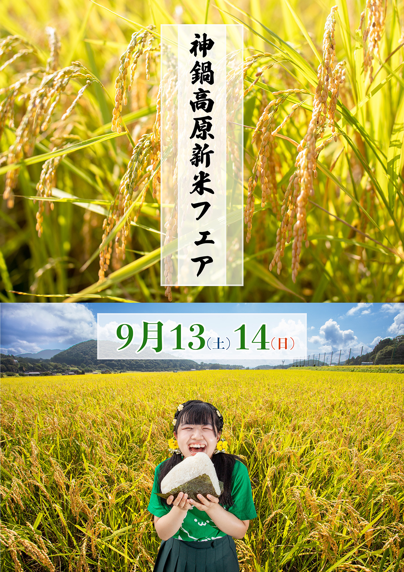 イベントEvent 2025.09.09 神鍋高原新米フェア2025開催<9/13(土)14(日)の2日間> 道の駅神鍋高原2025年の新米入荷が始まりました。 神鍋高原とその周辺地域の豊潤な自然に育まれた「今」「ここにしかない」新米をどうぞご堪能ください。 📽️人気の「コウノトリ育む農法で育てたお米」を知るショートムービー 9月13日(土)14日(日)に神鍋高原新米フェアを開催 新米の販売 お食事処メニューも9/13から新米ご飯 まずはお食事処で食べてみて、その味を確かめてから是非ご購入ください。 BACK RELATED SITES 関連サイト SNS 神鍋高原の季節の情報をお届けします 【お食事処 平日限定の新メニュー】 🍂 あたたかい神そば、はじまります マロニエまつり会場紹介 DANCE SPECIAL TEAM inマロニエまつり マロニエまつりの会場をご紹介