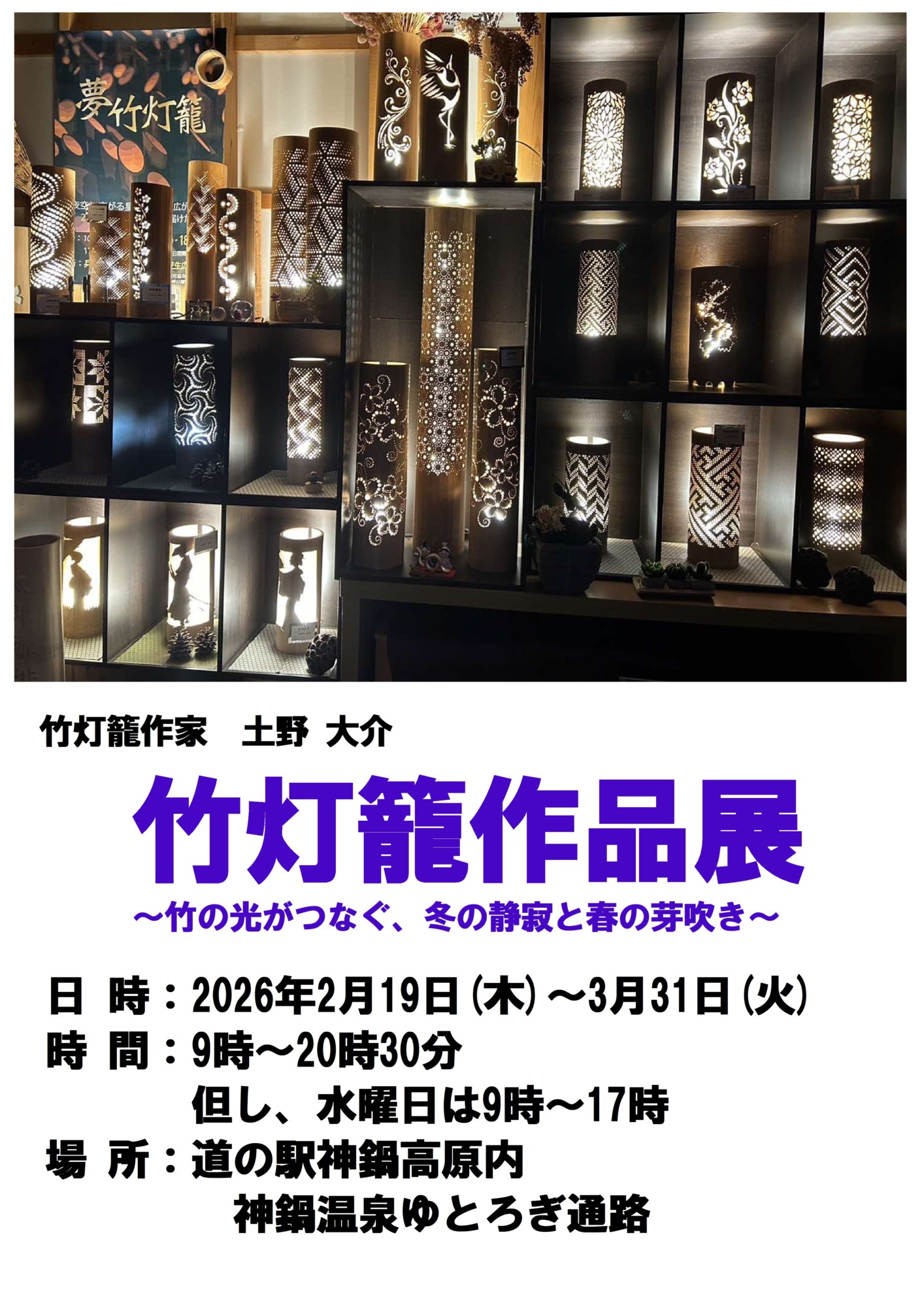 今年も開催!土野大介 竹灯籠作品展~竹の光がつなぐ、冬の静寂と春の芽吹き~