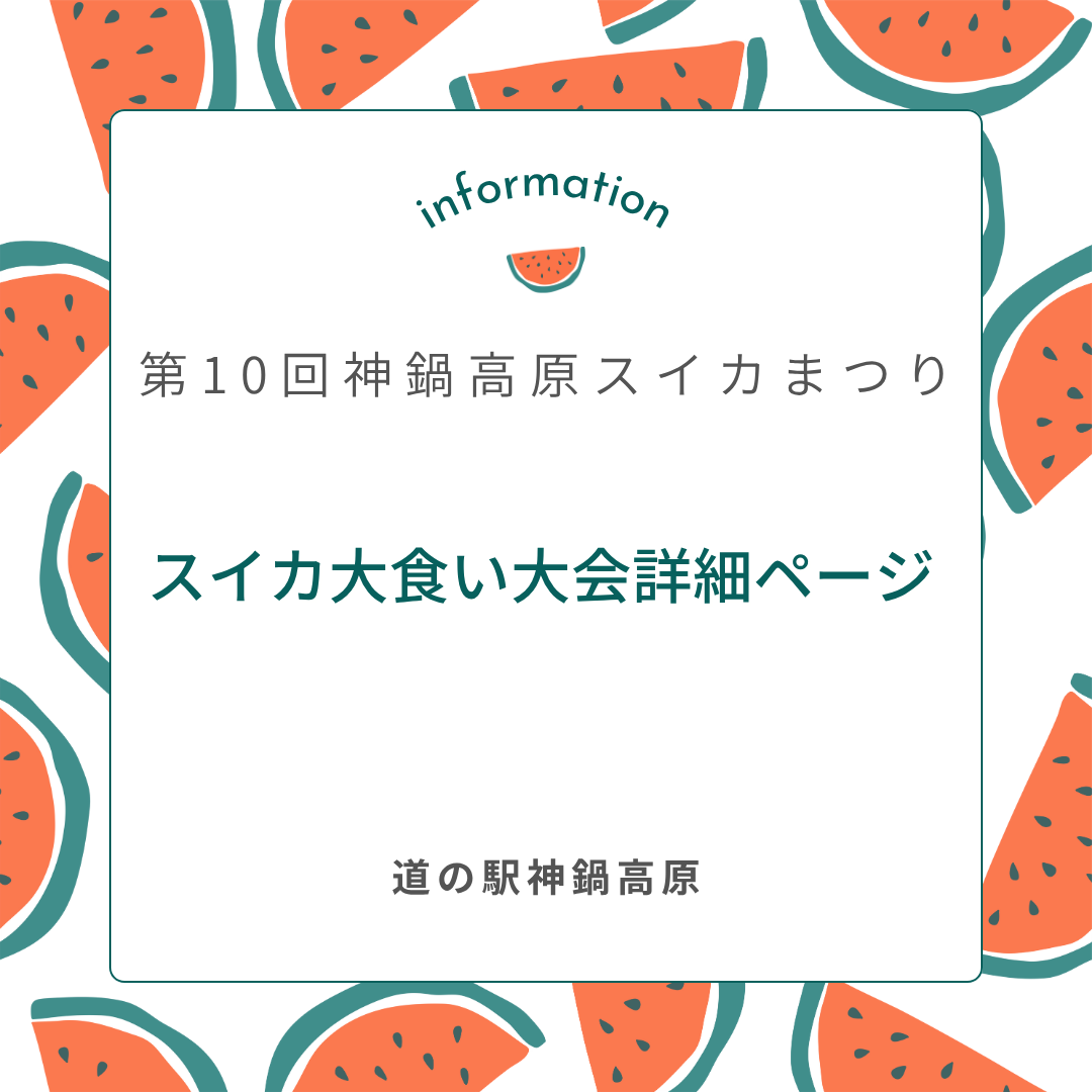 産直情報Farm Fesh 2025.07.31 神鍋高原スイカまつり スイカ大食い大会参加者募集! 申込はこちらまで ↓ BACK RELATED SITES 関連サイト SNS 神鍋高原の季節の情報をお届けします お食事処かんなべ<12月の土日祝ビュ 2025年末から2026年始にかけての営業時 予約必須!2日間限定の鍋ディナー🔥