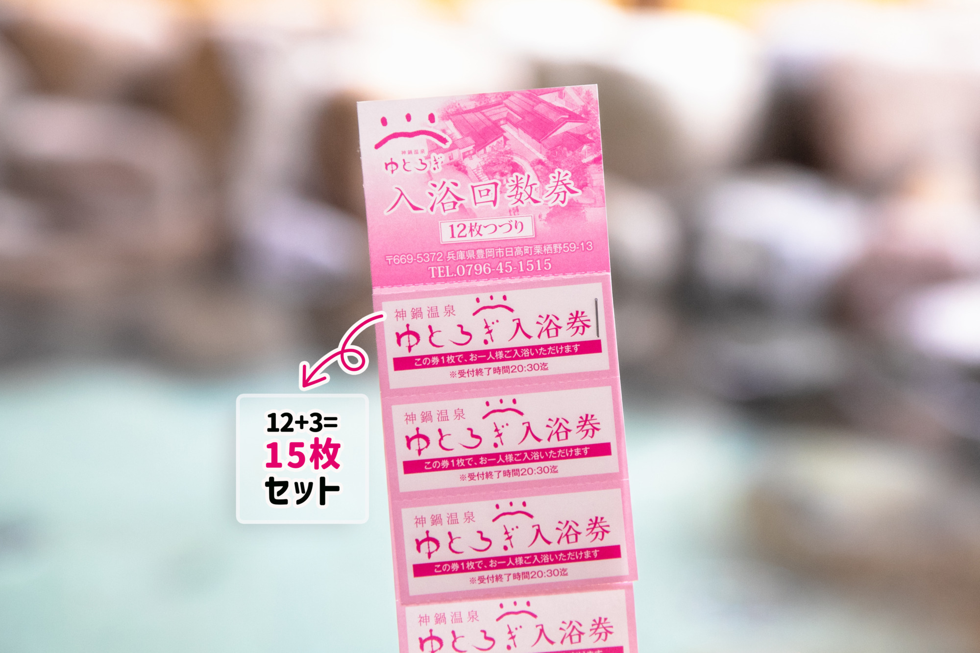 通常12枚セットの回数券が、販売期間中はお値段そのままで15枚セットにて購入いただけます(通常より3枚お得)。