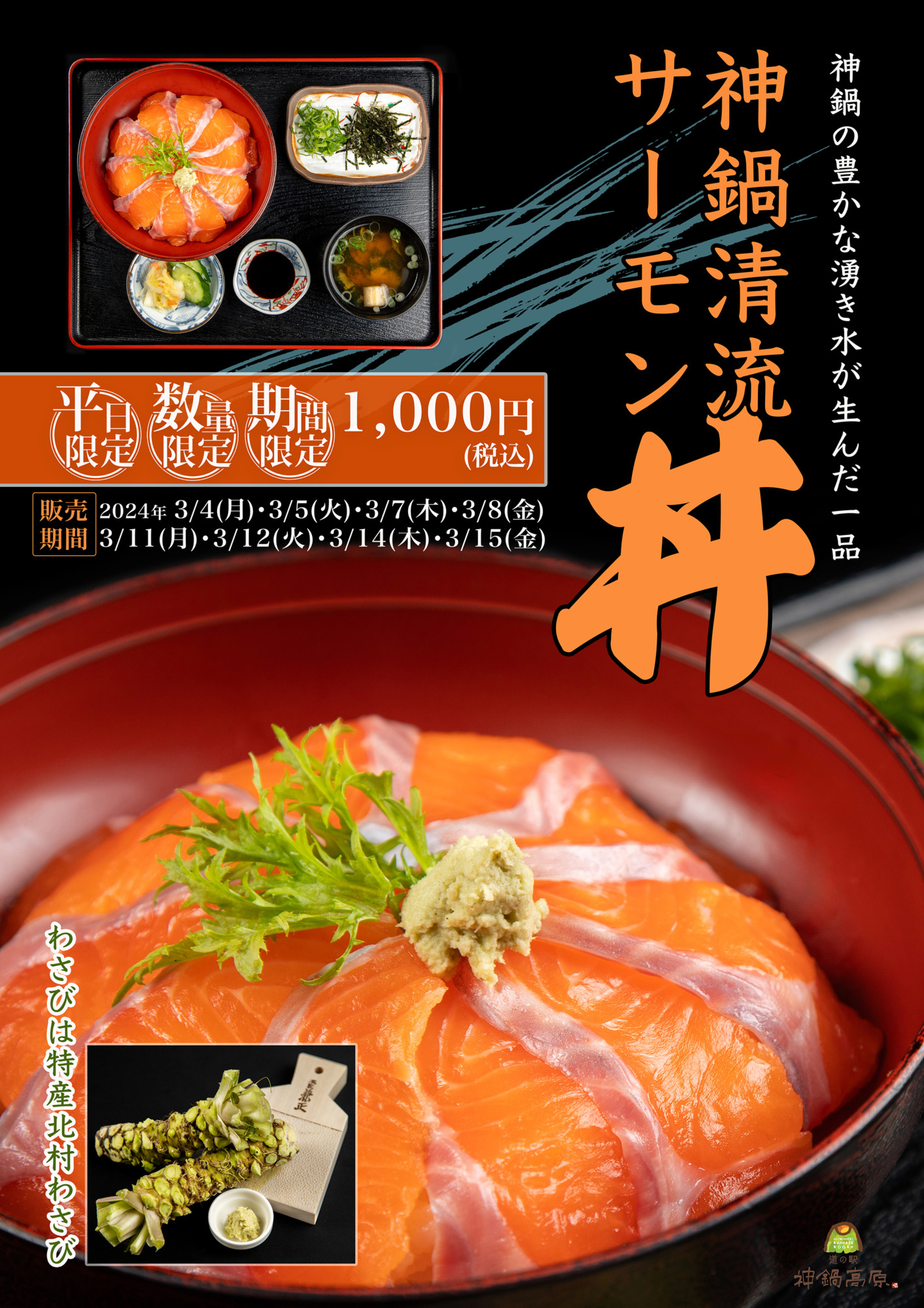 お食事処かんなべ2024年3月の特別メニュー「神鍋清流サーモン丼」