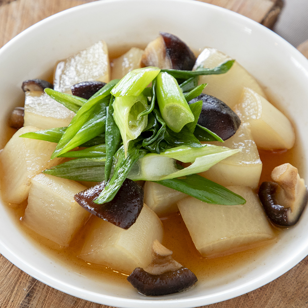 これからの季節、美味しくなる神鍋大根と神鍋ねぎをほっこり優しい味付けの煮物にしました。