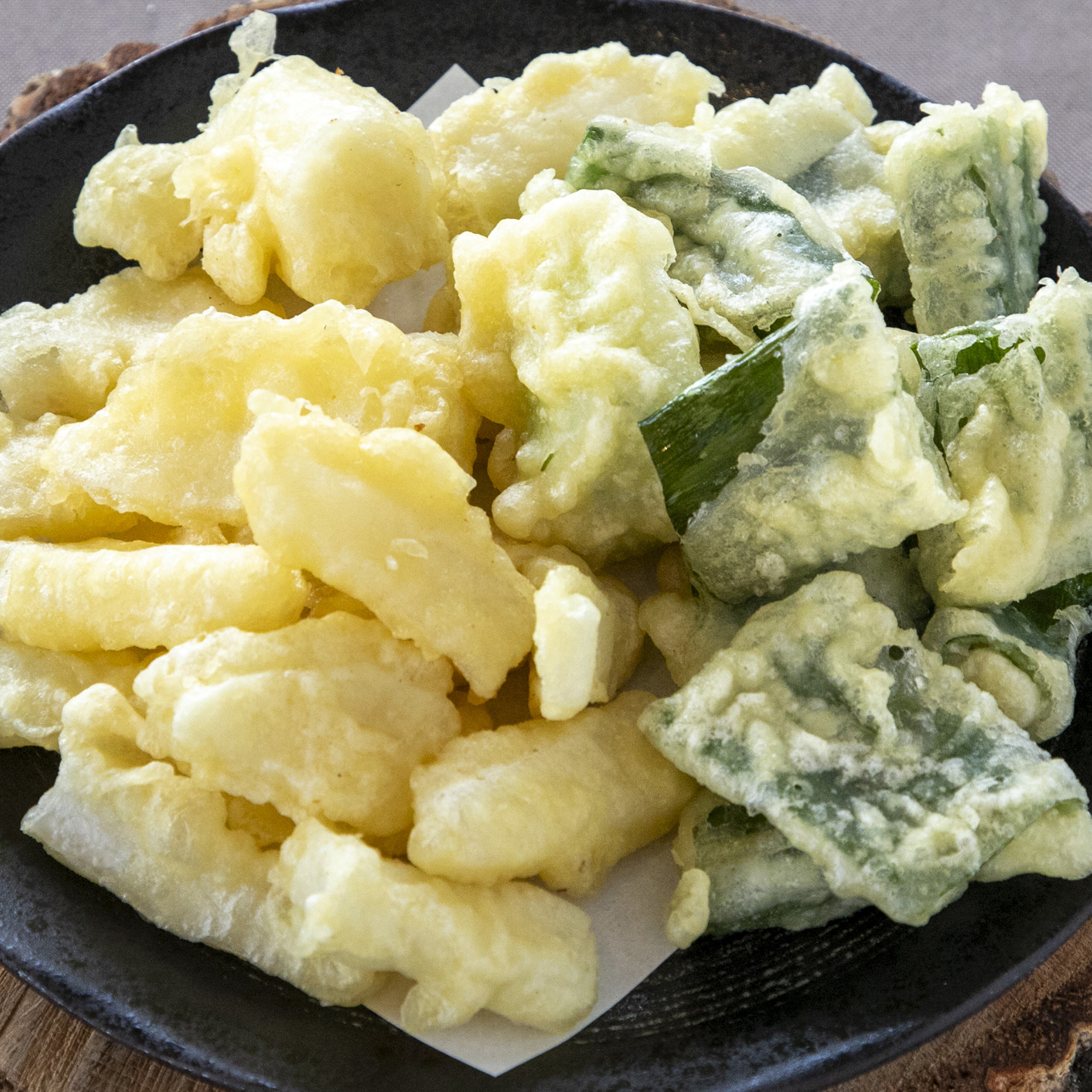 天ぷらとしては珍しい「大根の天ぷら」はシャキシャキとした食感が癖になりそう。「ねぎの天ぷら」もねぎの甘みが出て美味しい一品です。