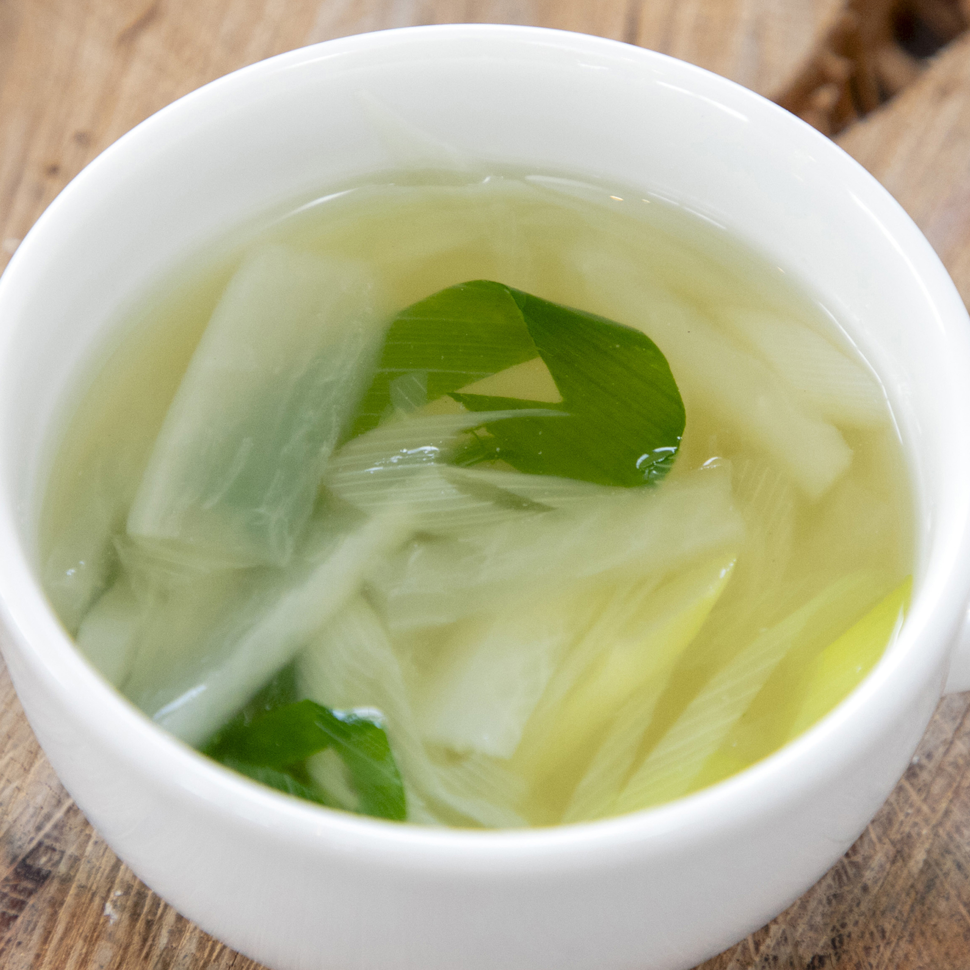 神鍋ねぎを使った鶏がらスープ。ねぎの甘みがほっこりする優しいスープです。