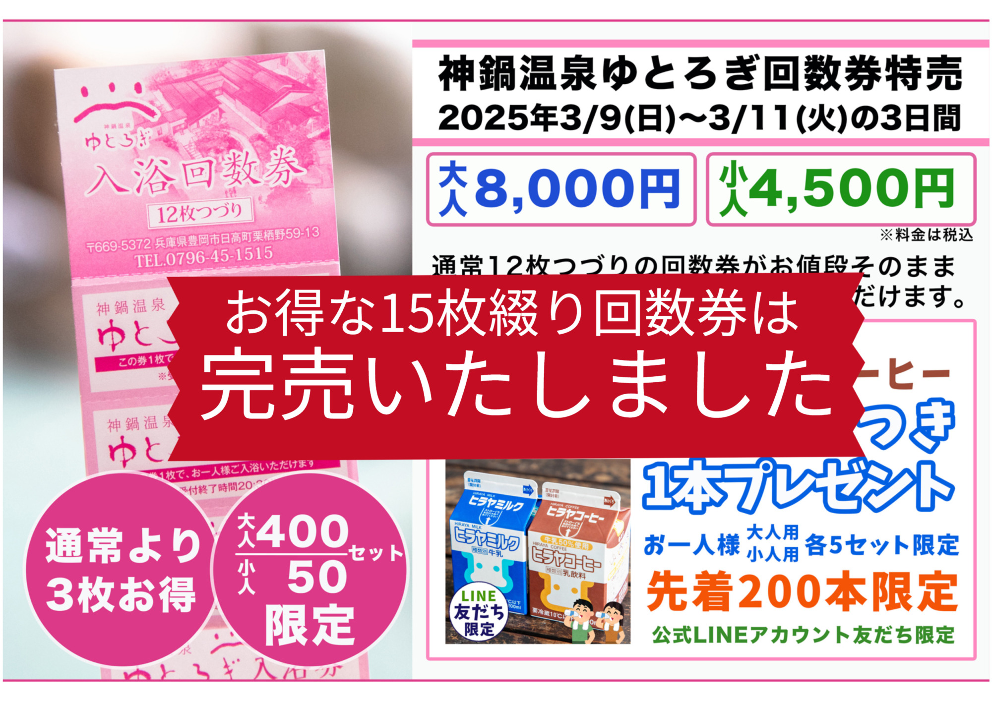 神鍋温泉ゆとろぎ回数券特売2025 ★販売終了(完売)のお知らせ★