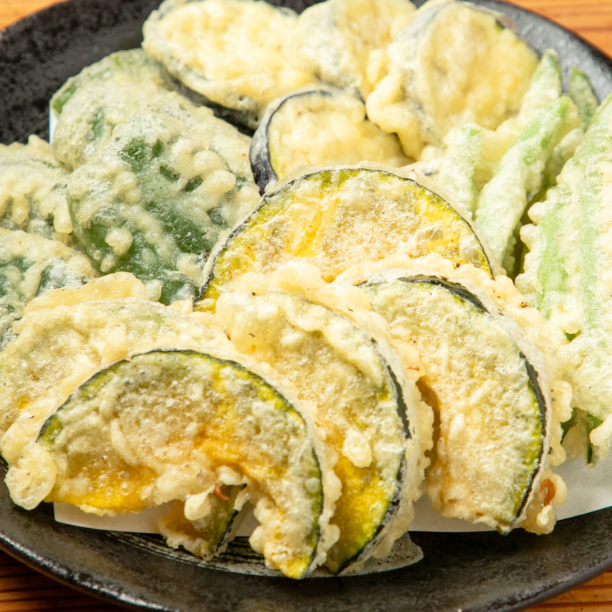 旬の夏野菜を天ぷらで!疲労回復、夏バテ防止やスタミナUPの 効果があるという天ぷら。それぞれの香りや食感の違いを楽しみながら味わって。