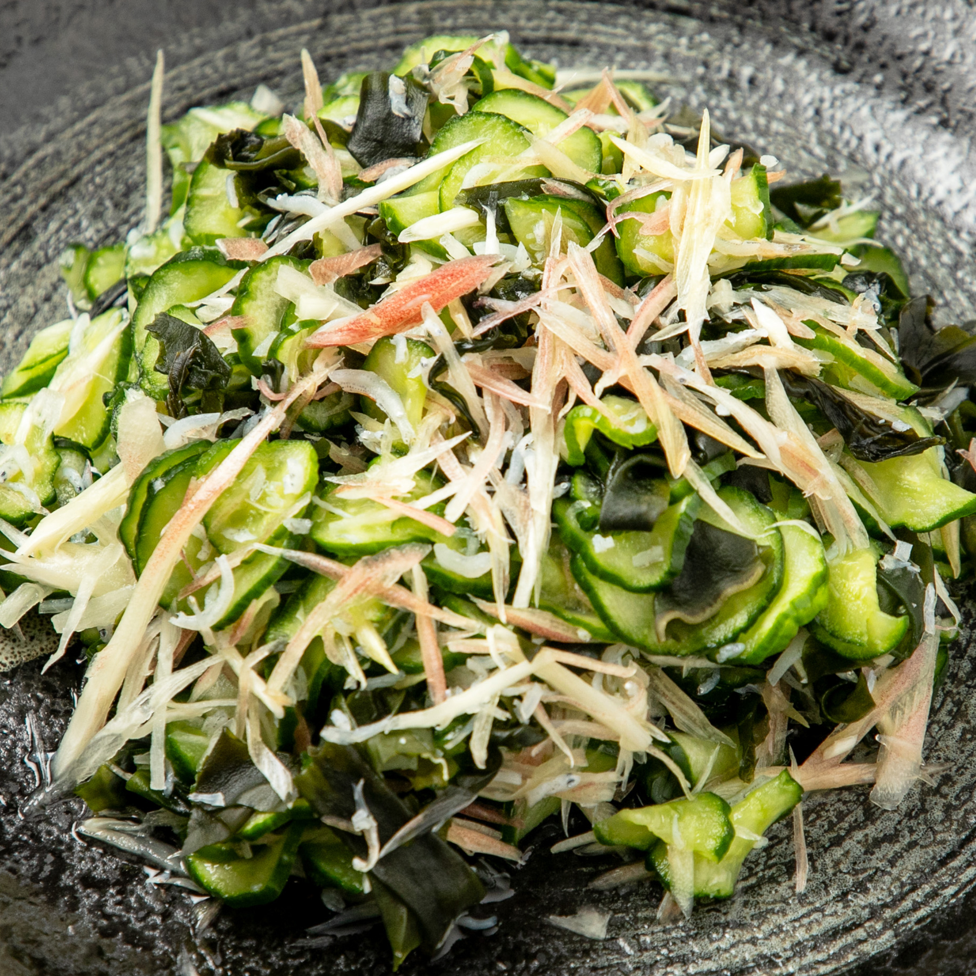 ふれあいふぁーむのきゅうりをたっぷりと使い、ミョウガでさっぱりと仕上げました。みょうがの香りがさわやかで、きゅうりとの相性も抜群です。
