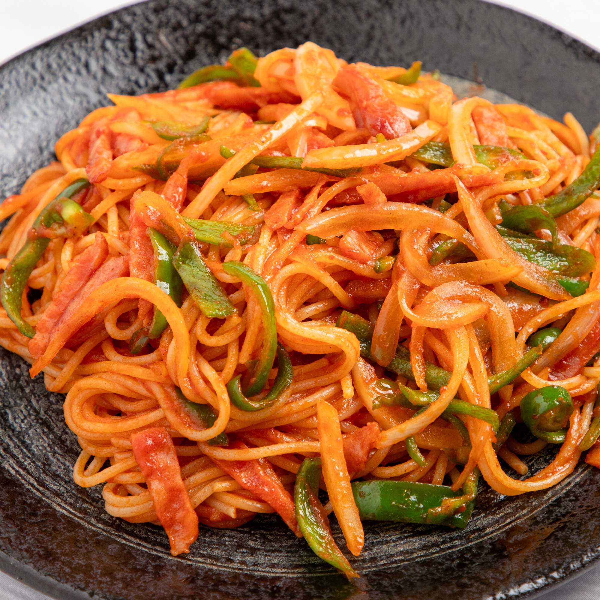 子どもに人気のナポリタン。トマトケチャップ味の美味しいスパゲティを召し上がれ。
