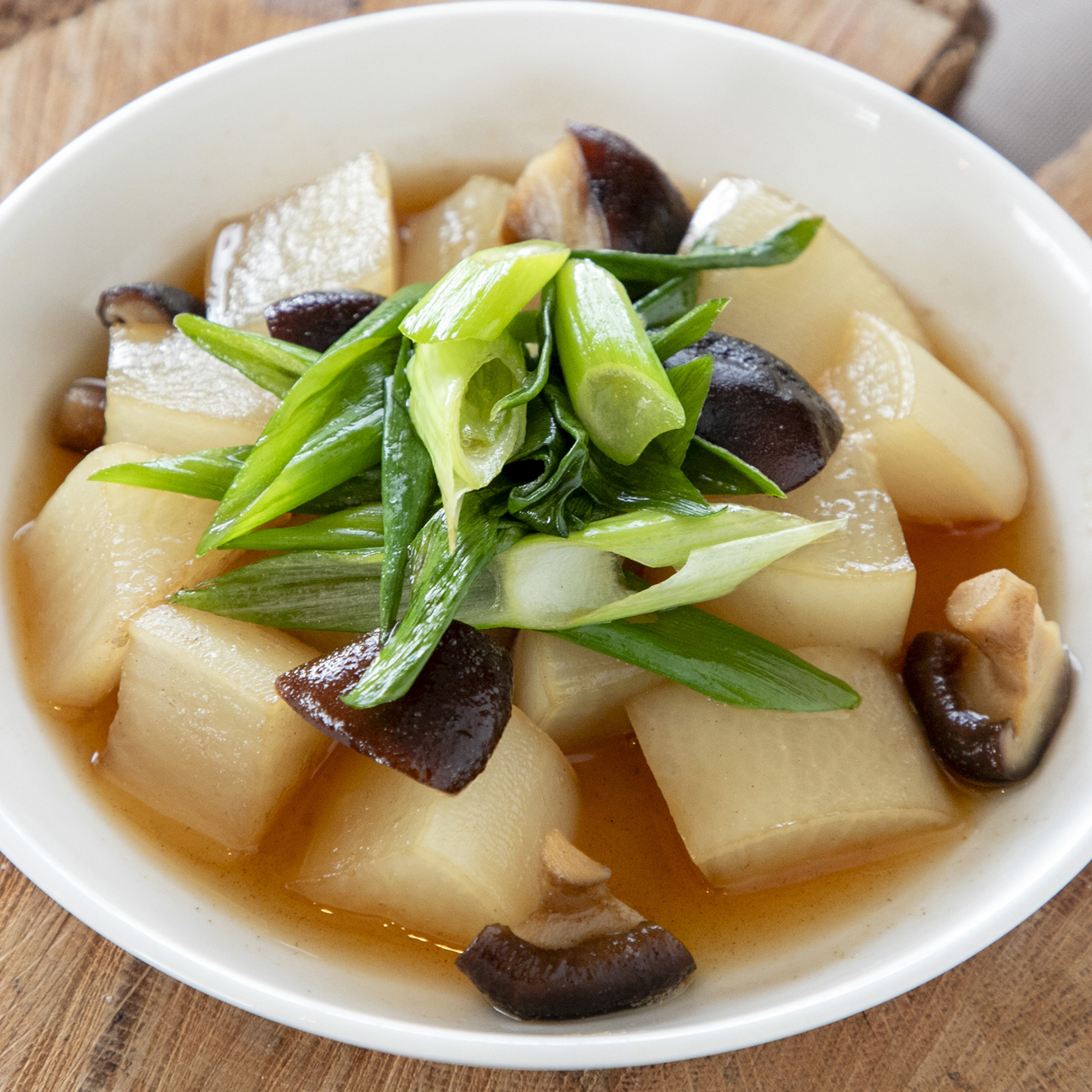 これからの季節に美味しさを増す神鍋大根と神鍋ねぎを、ほっこり優しい味わいの煮物に仕上げました。