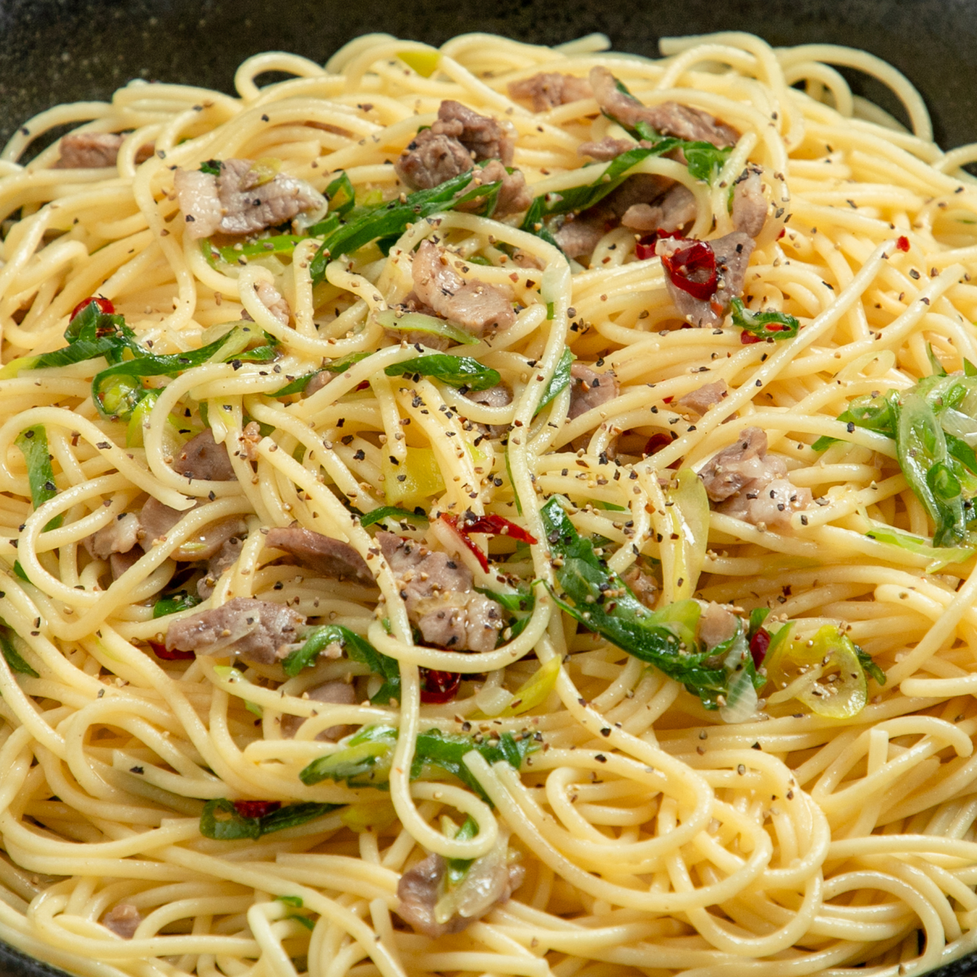 🍝 旨味凝縮!但馬鴨肉とネギのペペロンチーノ