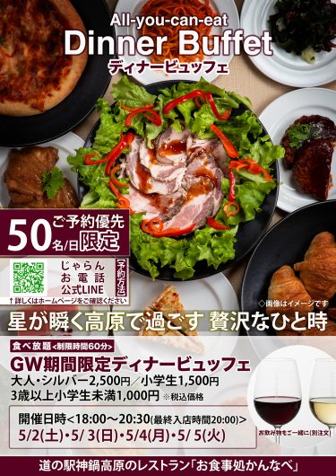 ゴールデンウィーク期間中、お食事処かんなべにてディナービュッフェを開催します。