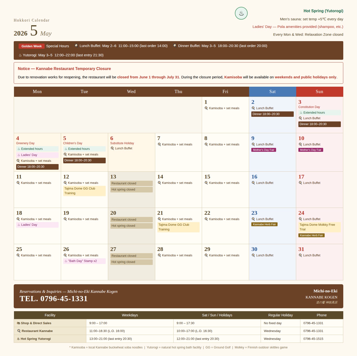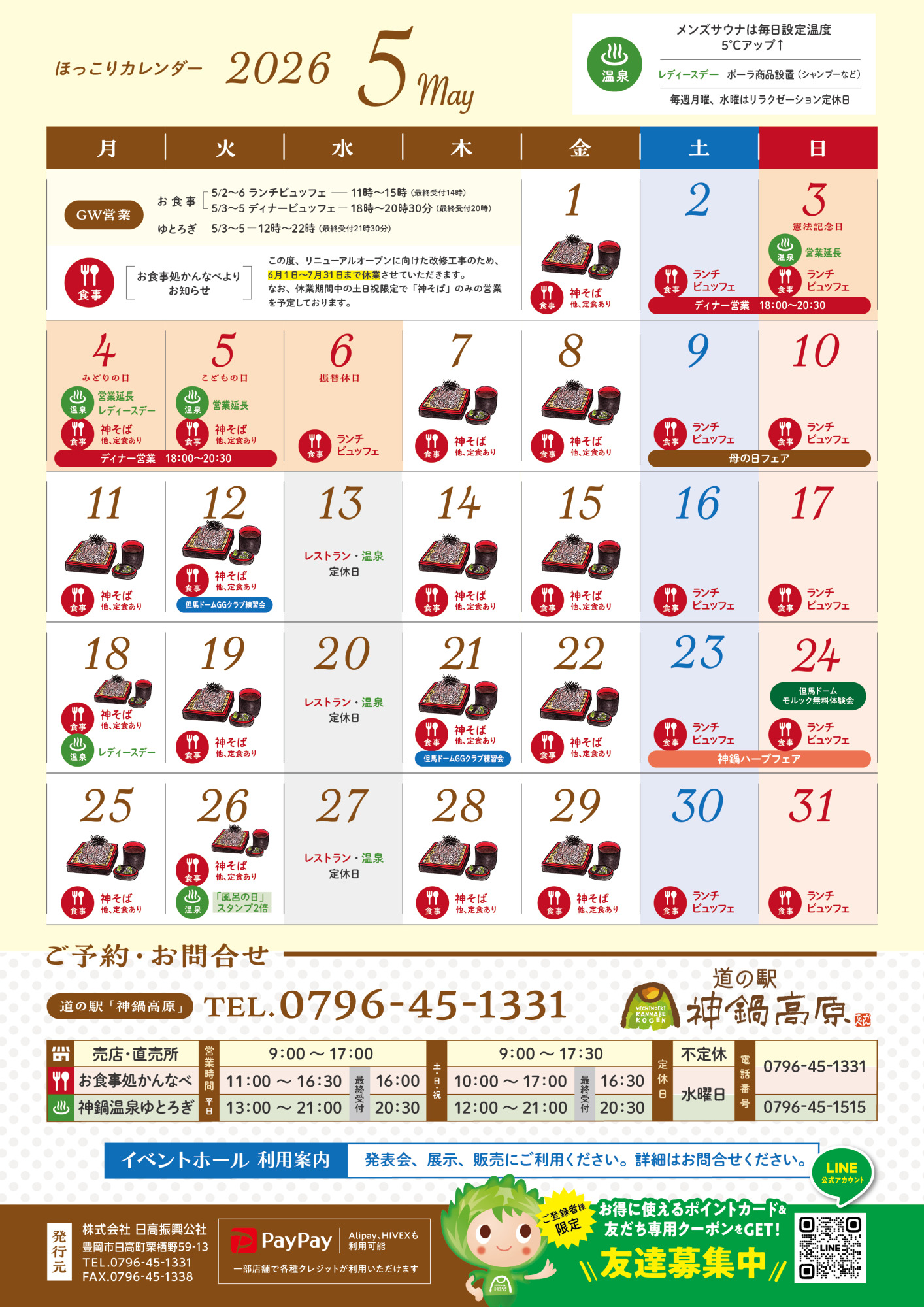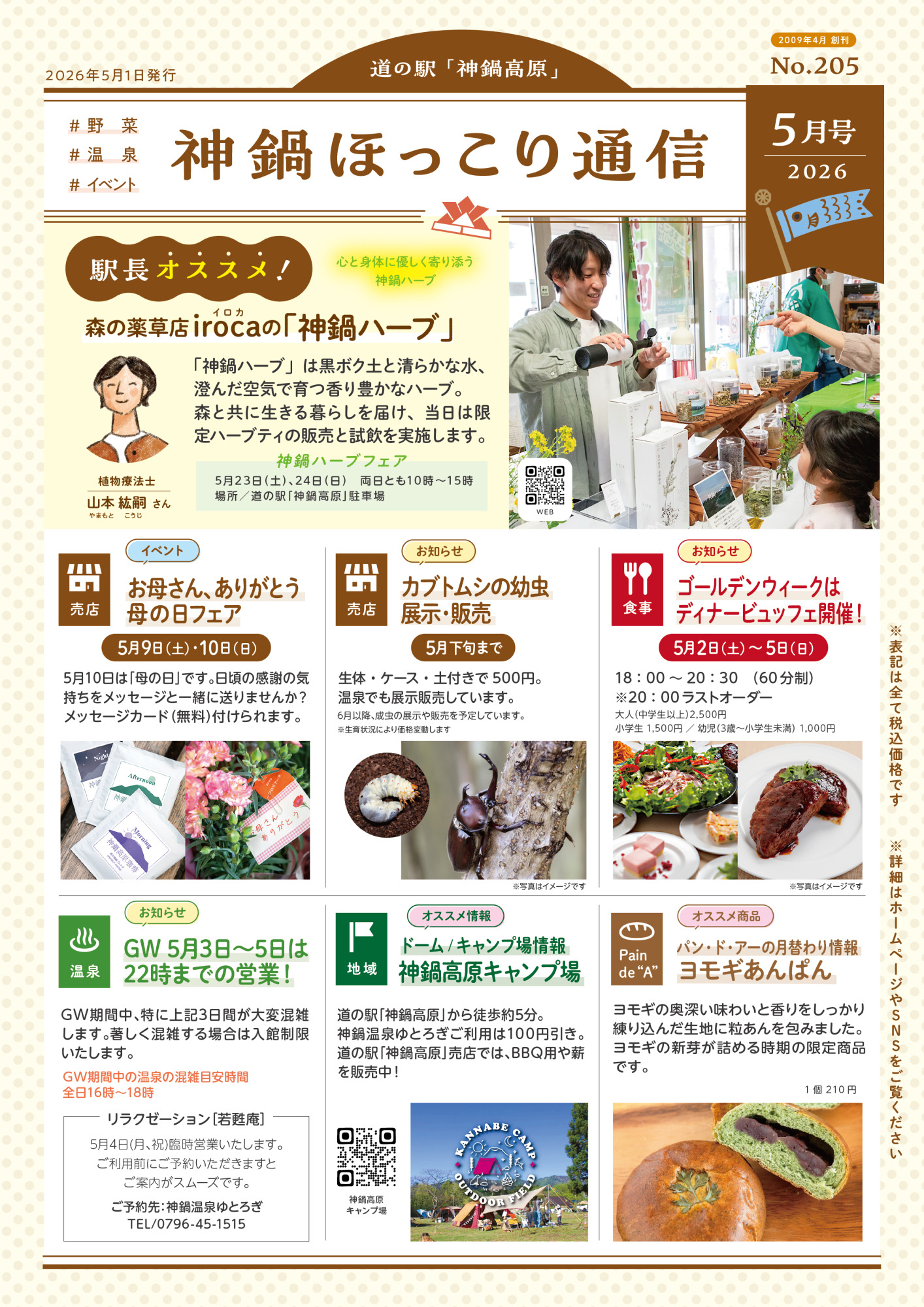 毎月一回、道の駅神鍋高原の嬉しい・美味しい・楽しい情報をお届けする「神鍋ほっこり通信」2026年5月号です。