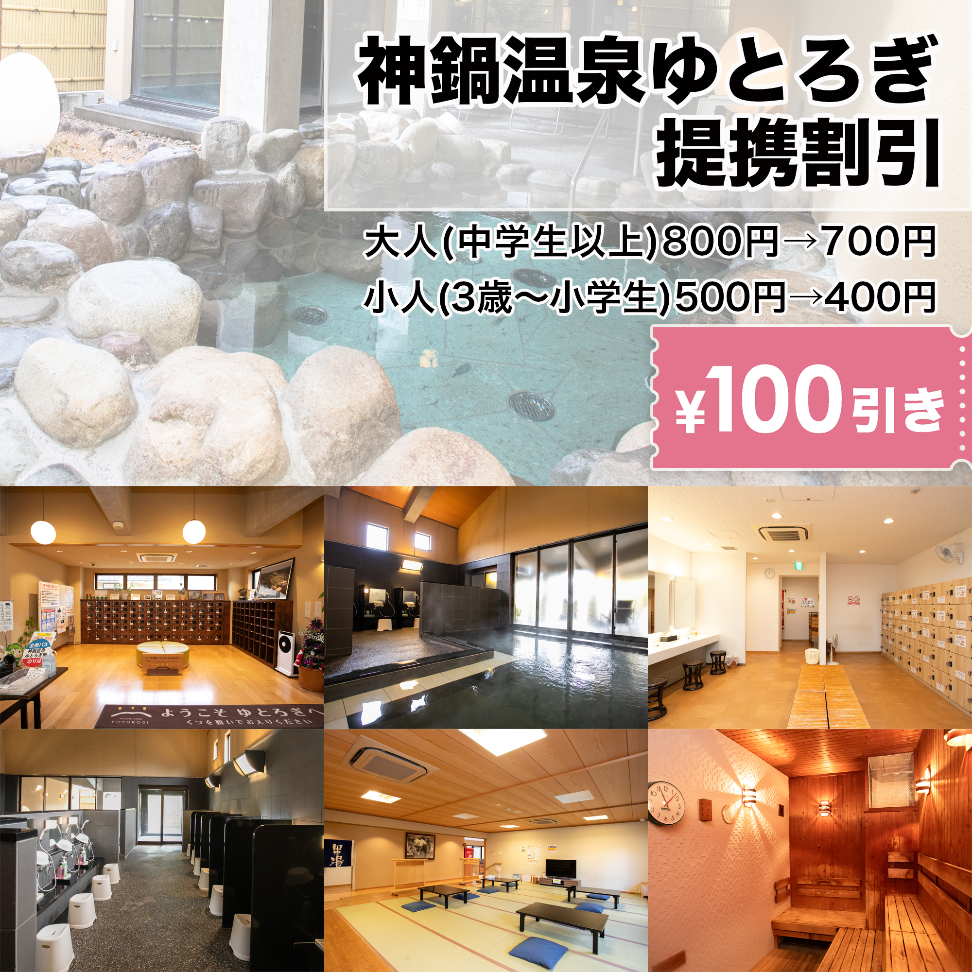神鍋温泉ゆとろぎでは、地域の企業、団体様と提携し入浴料の割引サービスを実施しております。
