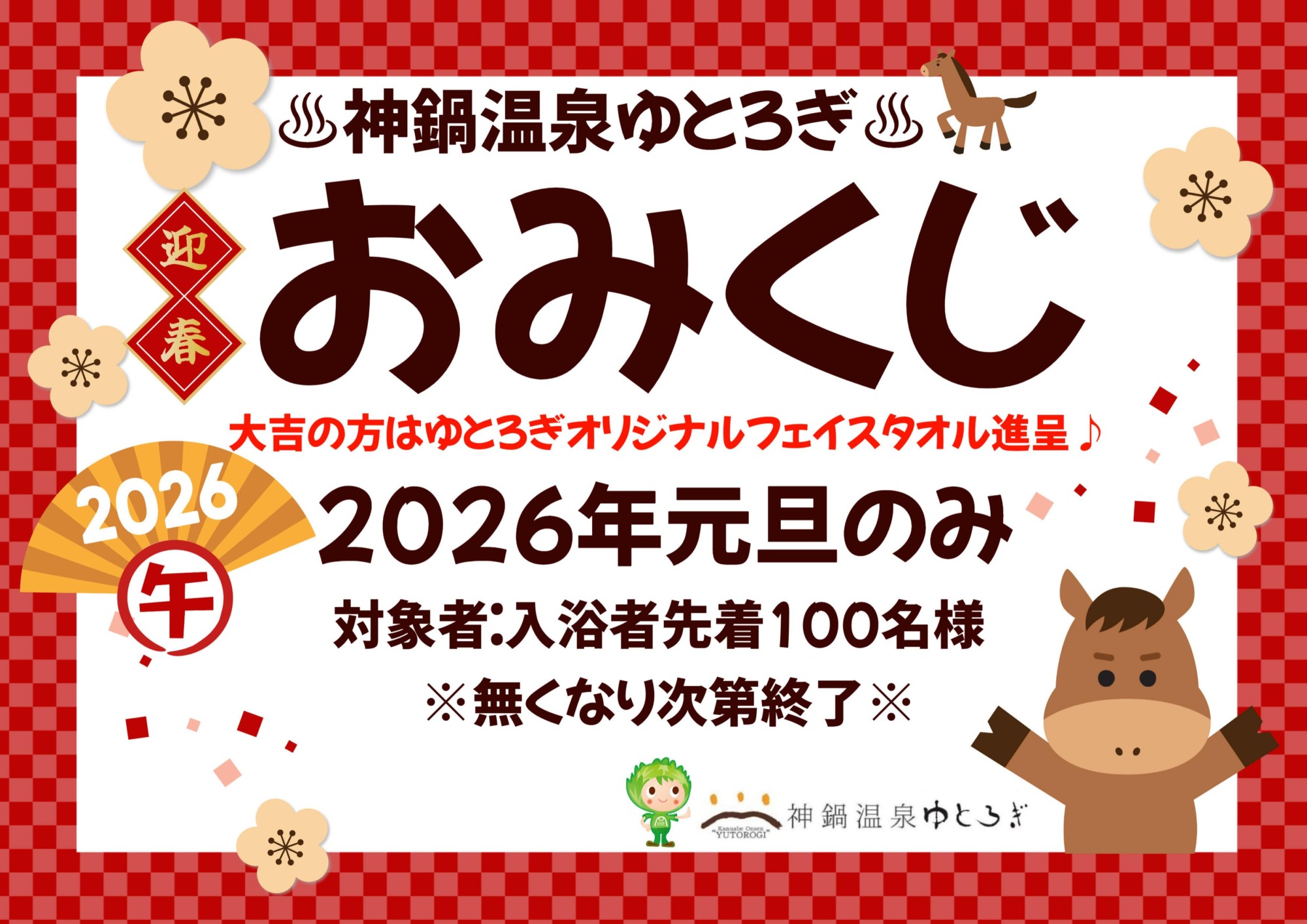 神鍋温泉ゆとろぎ/2026元旦サービスのお知らせ★