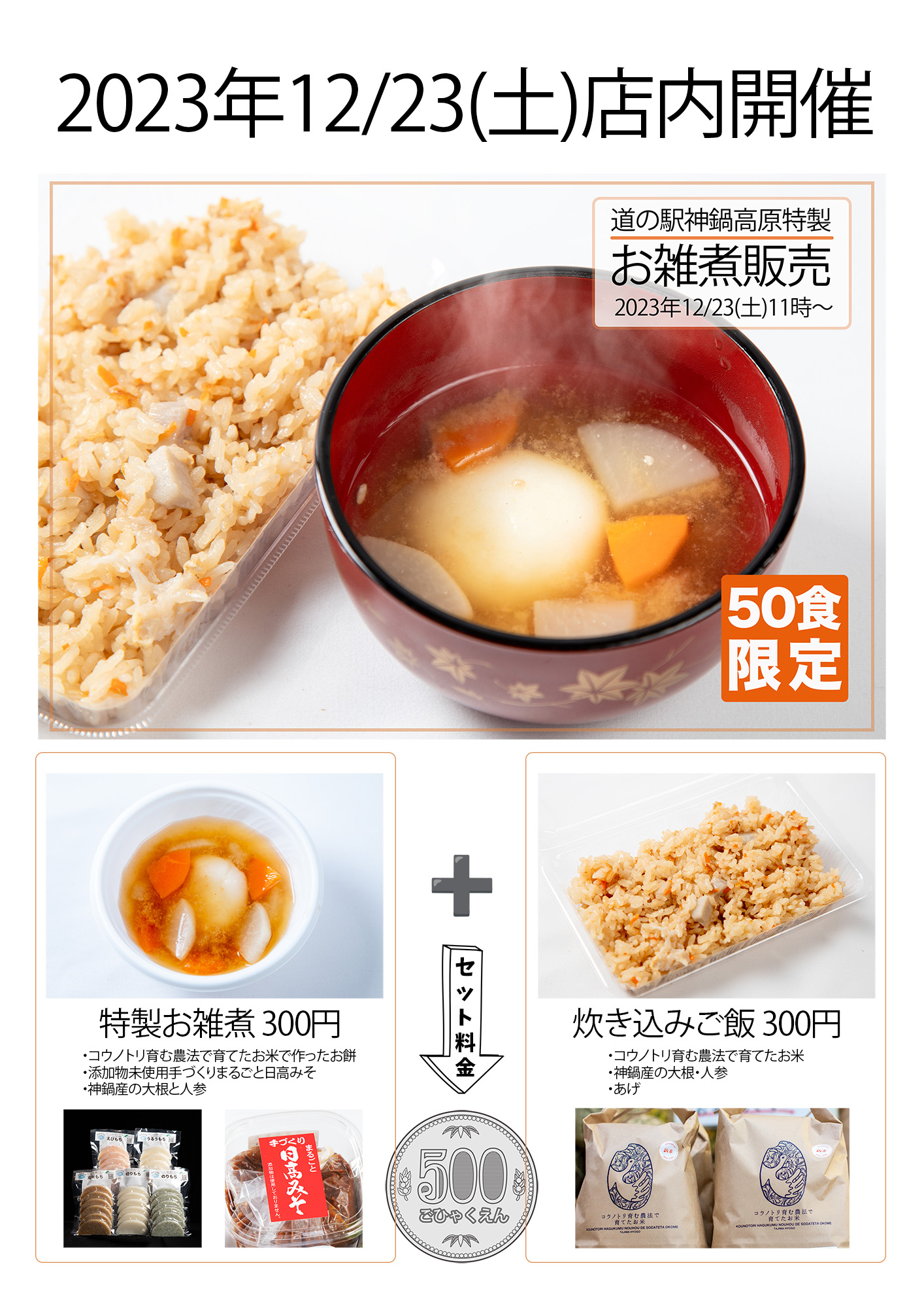 一日50食限定のお雑煮販売を開催します。