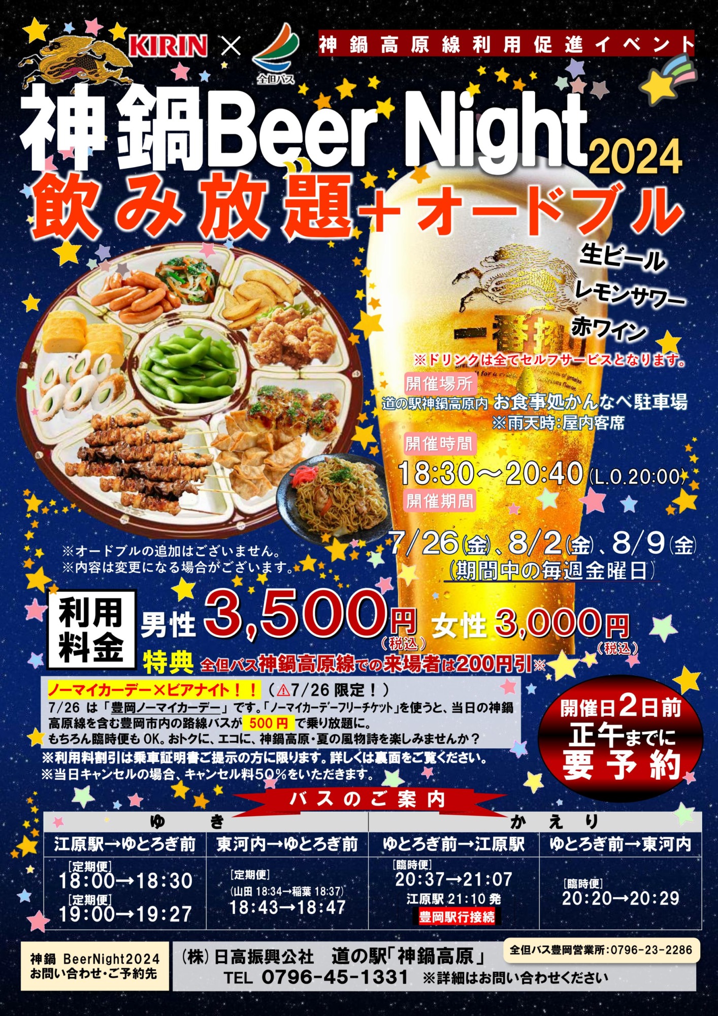 真夏の高原で「神鍋Beer Night2024」飲み放題+オードブル+抽選会⭐︎8/9残り枠あと僅かです(8/3更新)