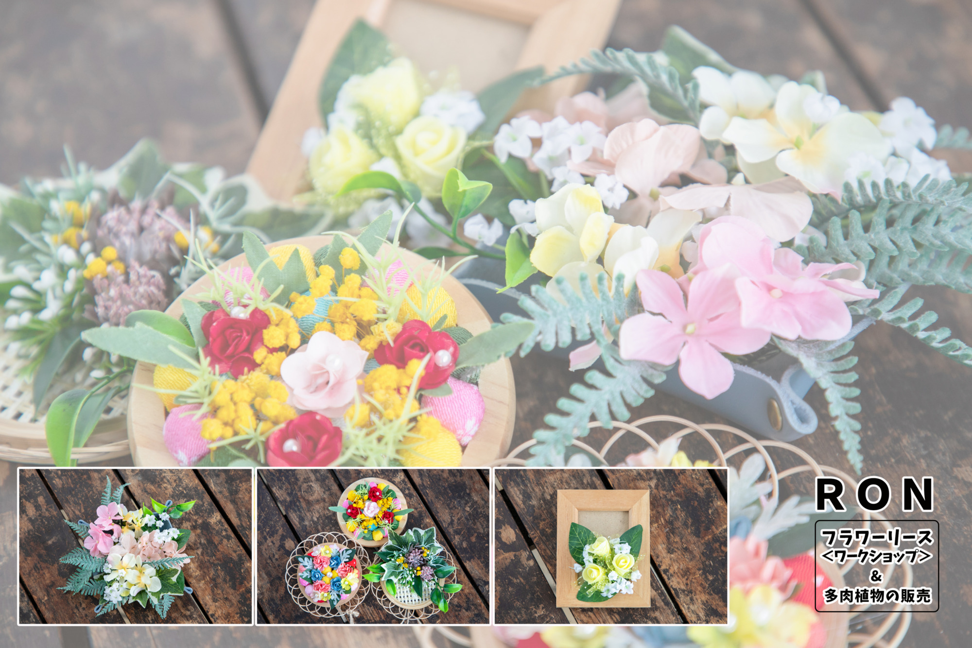 内容:フラワーリース(ワークショップ)、多肉植物(販売)