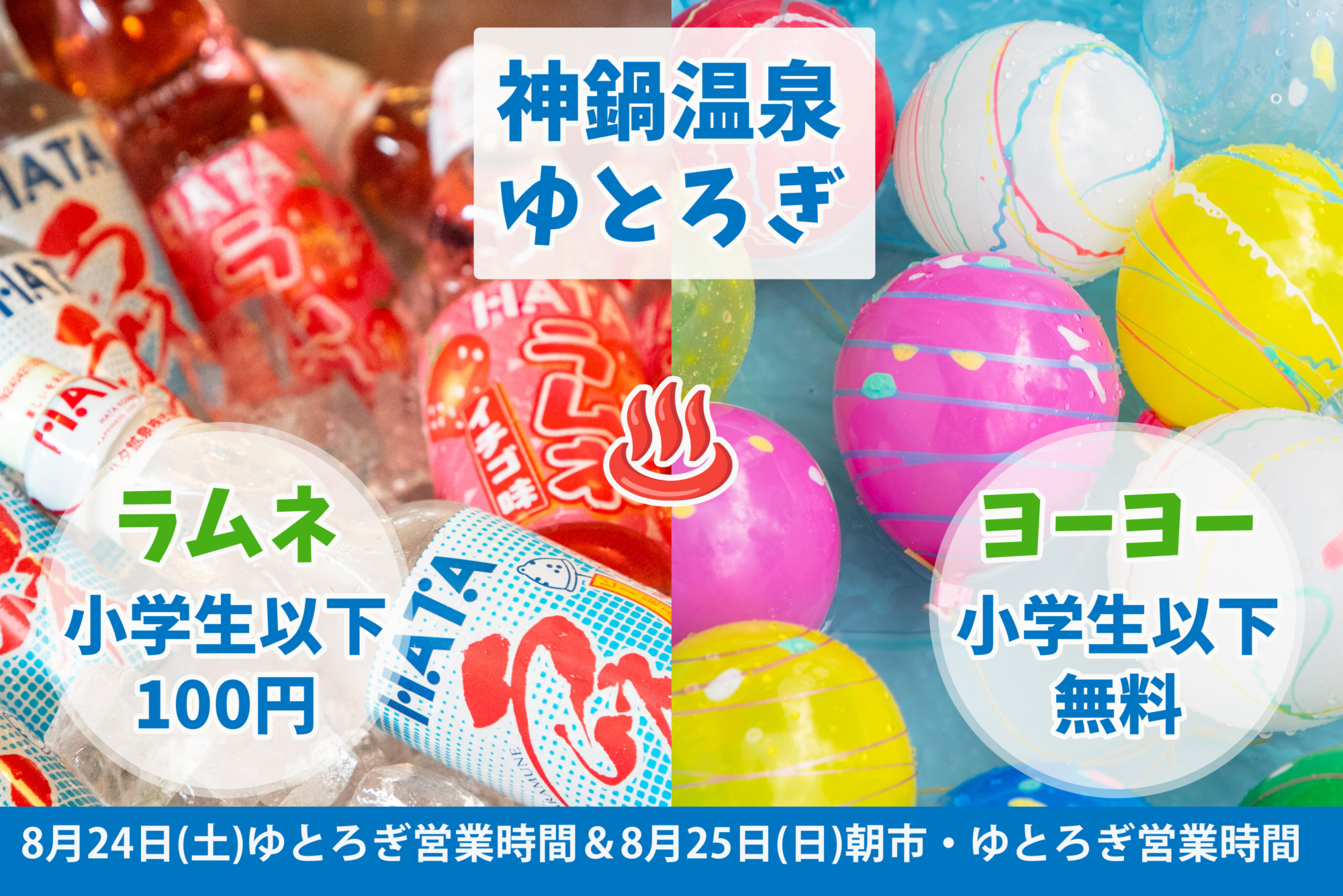 ※ヨーヨー釣りは8月25日(日)の朝市でも実施