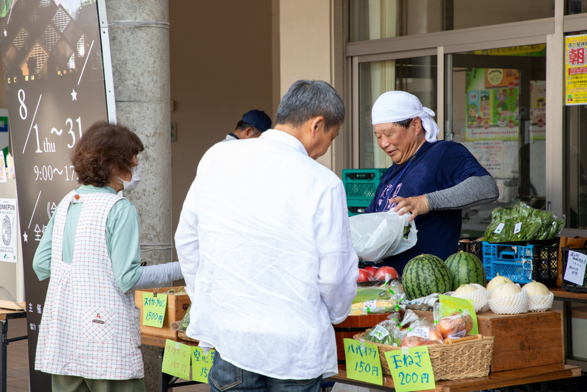 地元の採れたて新鮮野菜や果物を販売