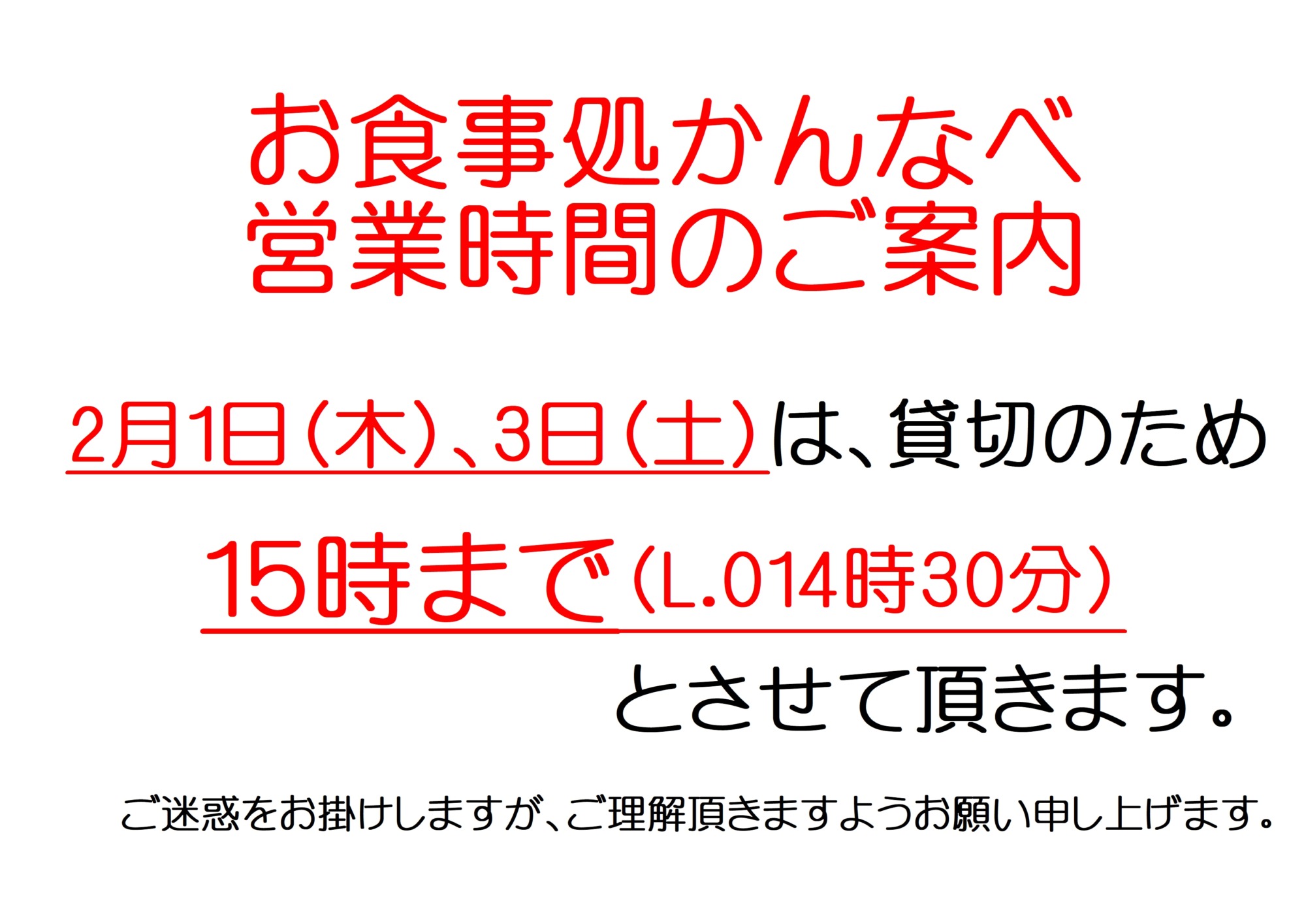 お知らせNews 2024.01.31 お食事処かんなべ営業時間変更のご案内 2024年2月1日(木)、3日(土)は、貸切のため営業時間が変更となります。 ご迷惑をお掛けしますが、よろしくお願いいたします。 BACK RELATED SITES 関連サイト SNS 神鍋高原の季節の情報をお届けします 夜のお食事処かんなべ、GW4日間だけオープン🌙 ディナービュッフェ60分食べ放題を開催します。 神 キャンプ前後のひと風呂、時間帯次第でゆったり度が変わります 神鍋温泉ゆとろぎ|混み合う時間帯のご案内 まだ間に合う桜と、満開の水仙🟡🤍 神鍋高原 開花レポート 4月12日撮影 / 4月13日週の参考に 旬の山菜を、思いきり食べてください🌿 春のランチビュッフェ 山菜特集 お食事処かんなべ|道の駅神鍋高 神鍋夜桜さんぽ🌸 清滝小学校の桜が、夜空に浮かびあがっています。 4月15日(水)頃まで、実施中。 清滝小学校の桜が、ほぼ満開です🌸 開花情報|2026年4月6日撮影 今週末(4/11土・4/12日) 🌸 神鍋高原周辺の桜が、満開に向かっています。 桜速報 2026.4.2 今週末・来週末のお出か Instagram3000人フォロワー達成祈念☆抽選ライブ配信です 桜咲く神鍋高原でお召し上がりください。 🌸春のお花見ソフトクリーム🌸 4/4(土)・4/5(日)の2 🎉✨ フォロワー3,000人達成記念プレゼント企画 ✨🎉 4月2日(木)12:00〜 ライブ配信にて