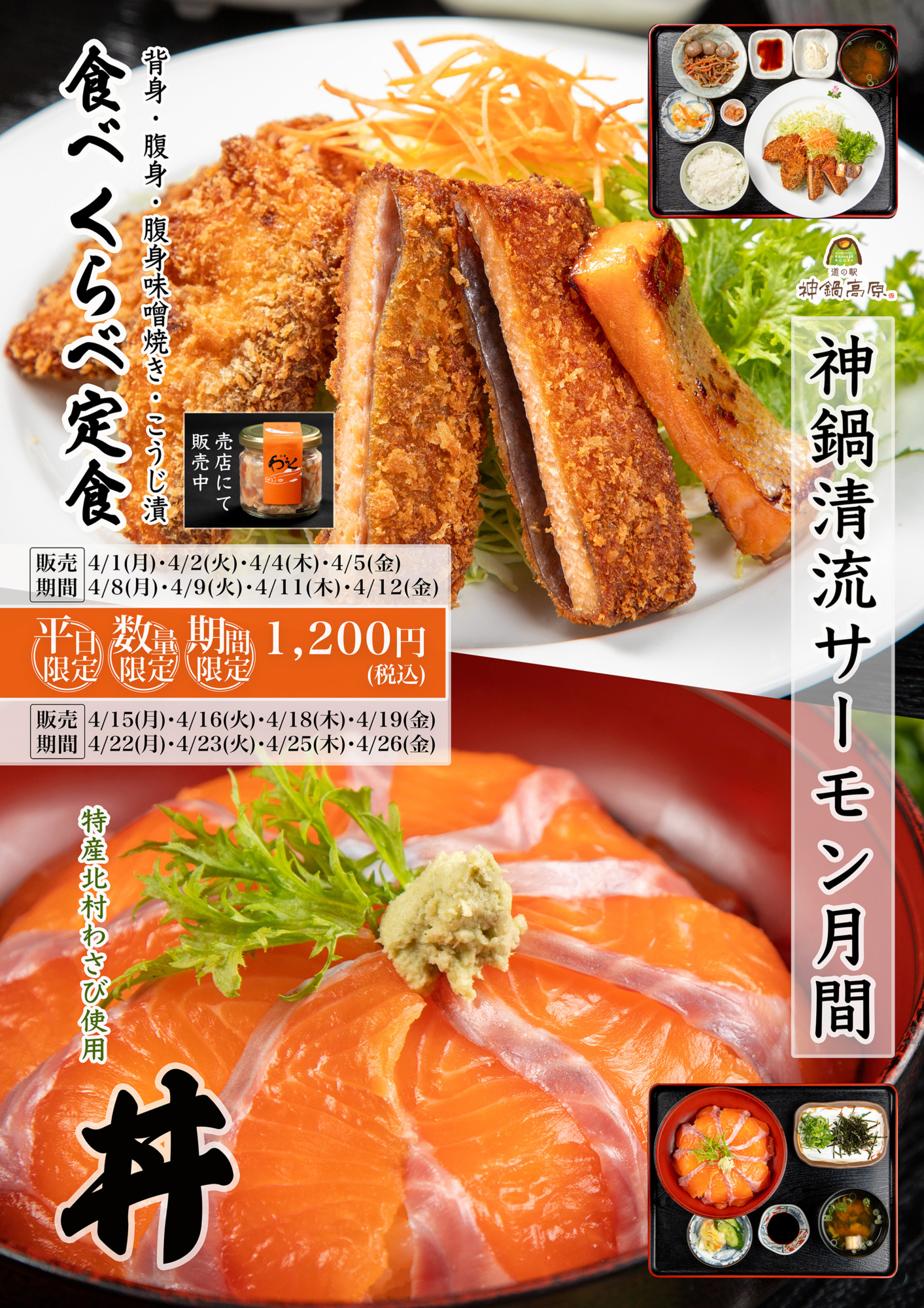 4月の平日お食事処かんなべは「神鍋清流サーモン月間」