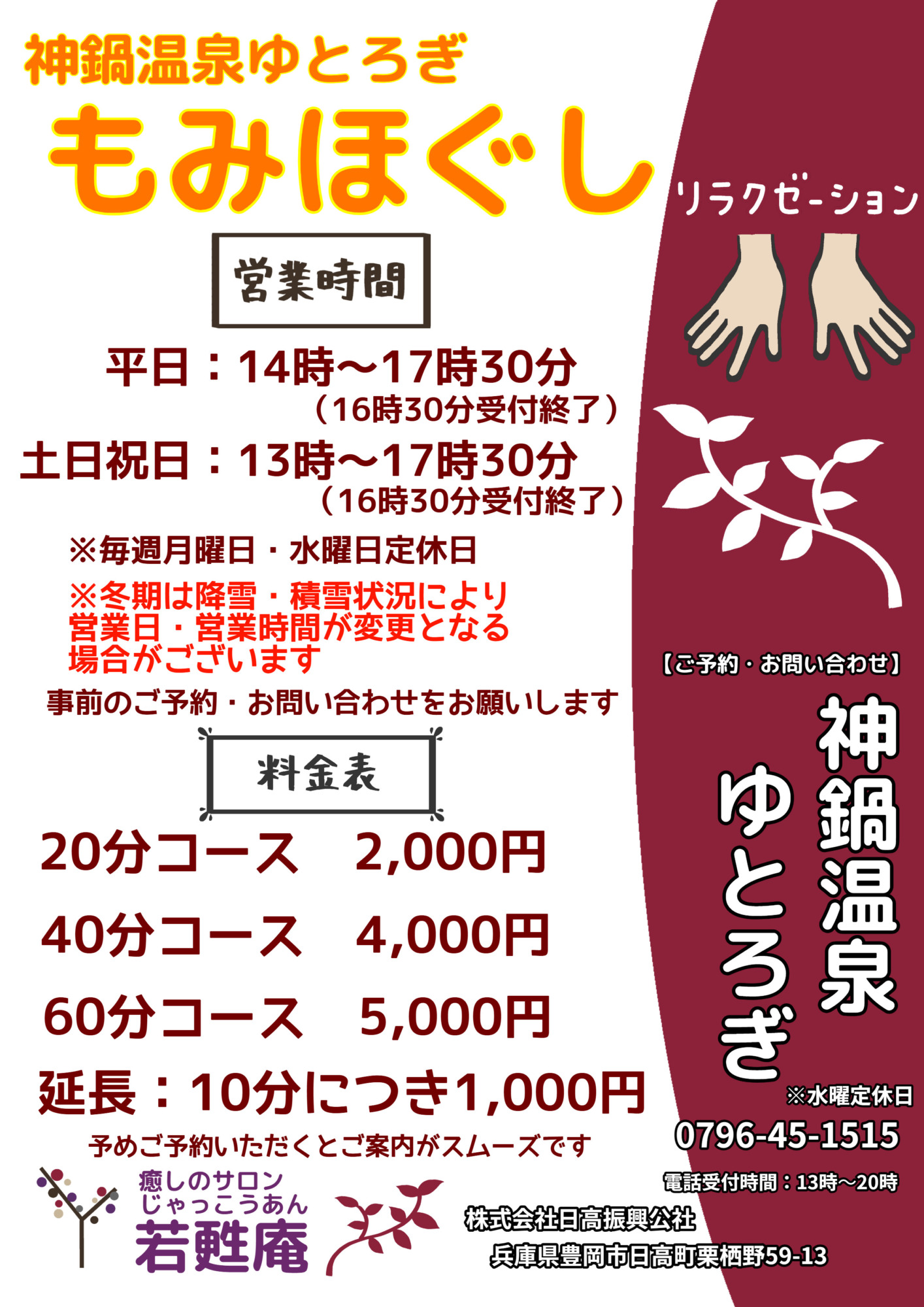 リラクゼーション営業時間のお知らせ
