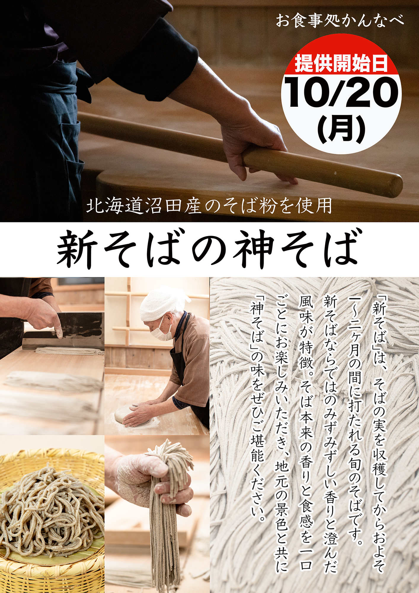 道の駅神鍋高原 内 レストラン「お食事処かんなべ」は10月20日より、北海道沼田産のそば粉を使用した新そばの提供を開始いたします。