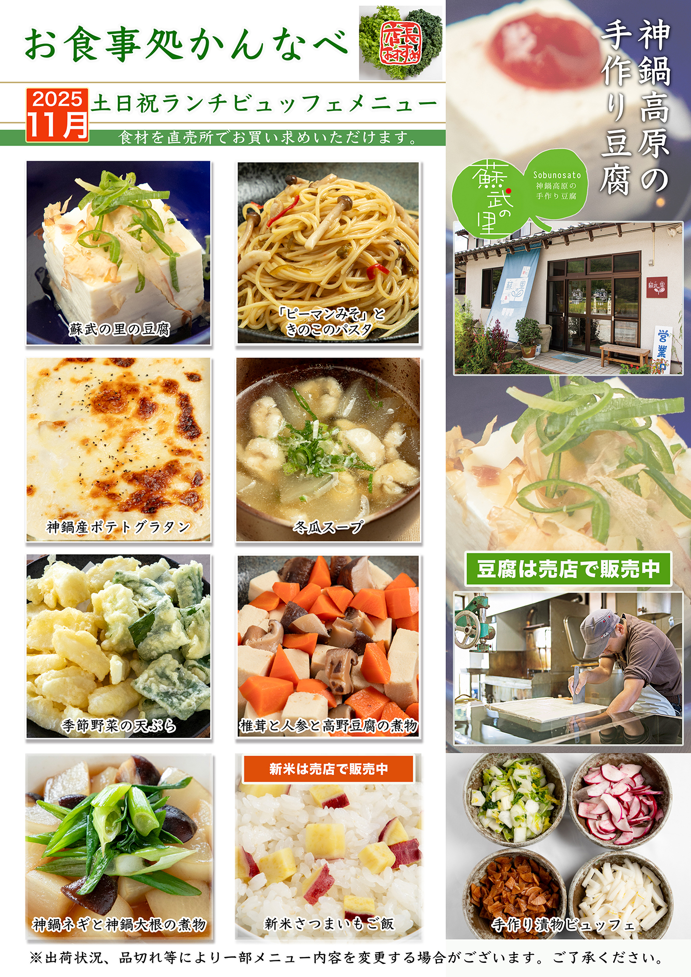 ※豆腐は土曜・日曜・祝日(月曜以外)に売店でも購入できます。