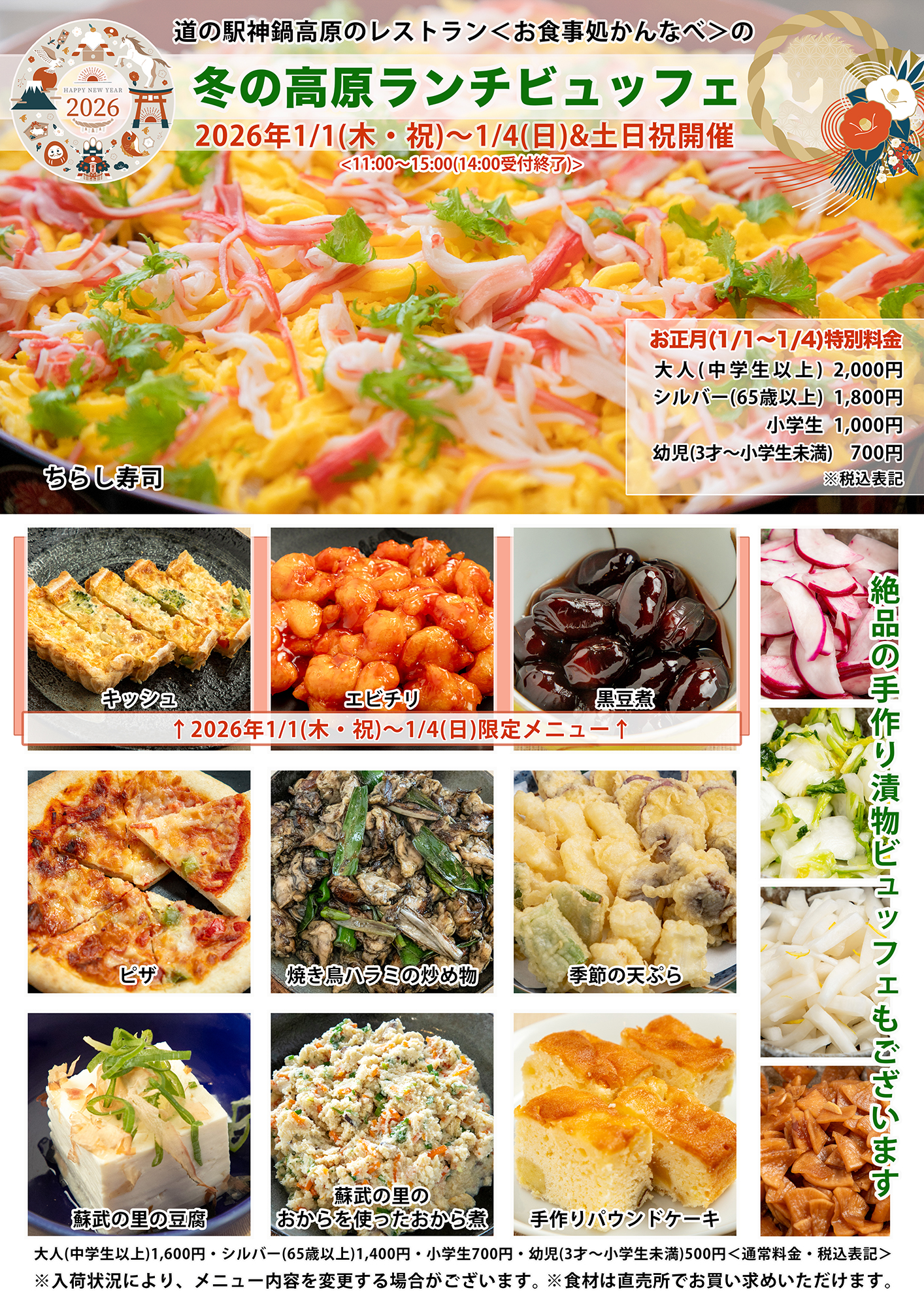 冬の高原ランチビュッフェ<お正月&土日祝開催>2026年は1/1から営業します