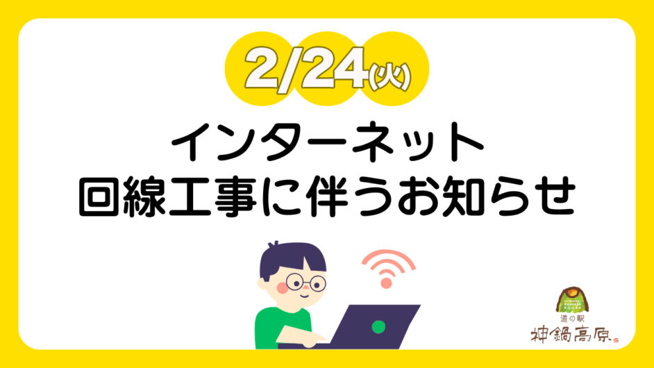 【お知らせ】2/24(火) 2/25(水)電話とインターネット不通の時間帯があります(施設は通常営業)2/19更新