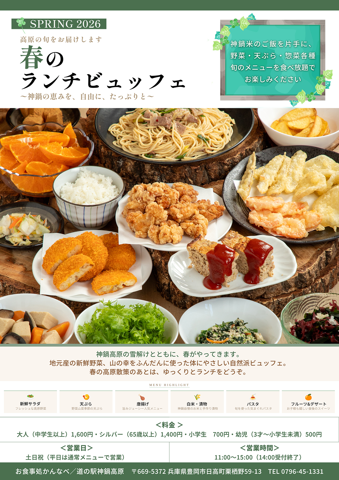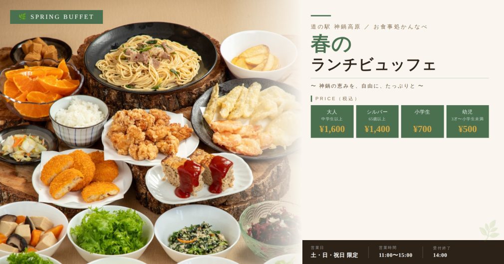 【春の神鍋高原】ランチビュッフェ開催中|地元野菜・天ぷら・惣菜が食べ放題!