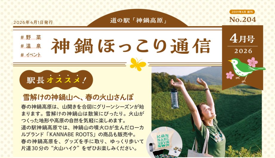 毎月一回<道の駅神鍋高原>の嬉しい、美味しい、楽しい情報をお届けする「神鍋ほっこり通信」2026年4月号です。