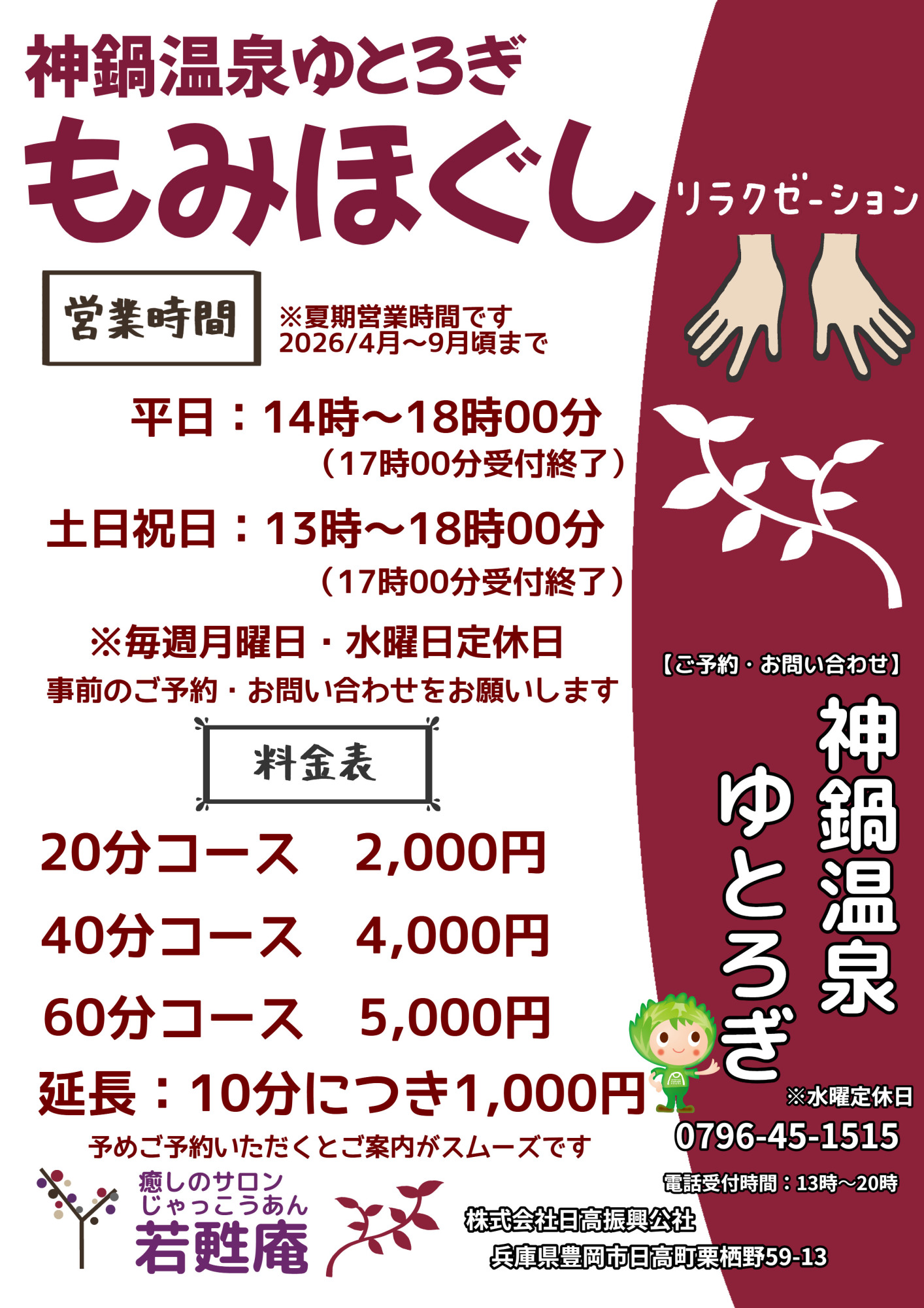 リラクゼーション営業時間変更のお知らせ【2026/4/2~】