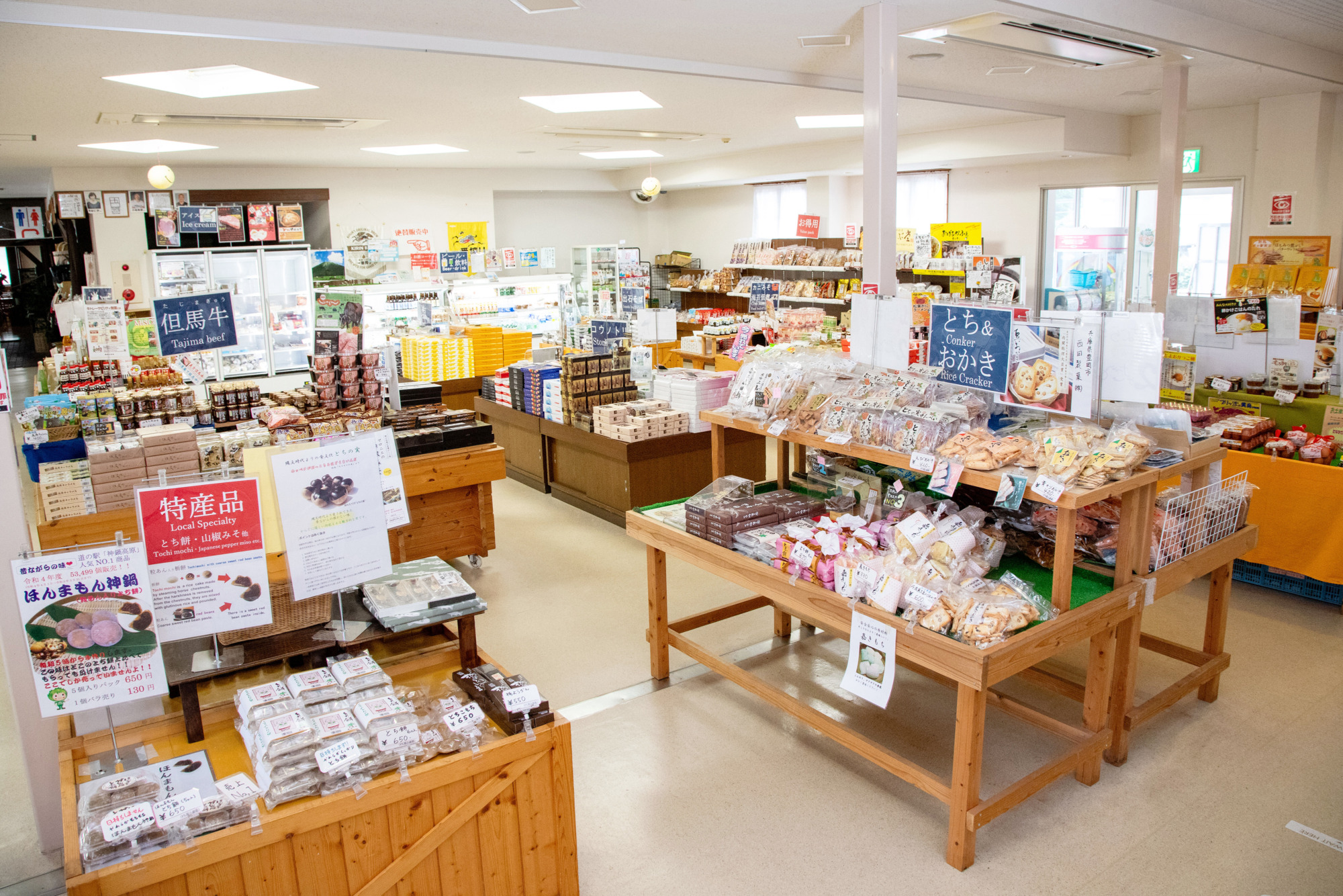 お勧めは「ほんまもん神鍋(とち餅)」「日高みそ」「キャベツチップ」など。時期限定でご提供できる商品もありますのでお気軽にスタッフへお尋ねください。
